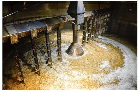 糖化过滤槽形式糖化锅搅拌的主要有两种形式:一是采用具有排糟功能的搅拌桨,必要时还可以设置双层桨。这种形式的搅拌桨混合和固液悬浮功能良好,能够保证物料各点温度基本一致,但是这种形式的搅拌桨舍弃了耕糟功能,在需要耕糟的情景下弱点必现。